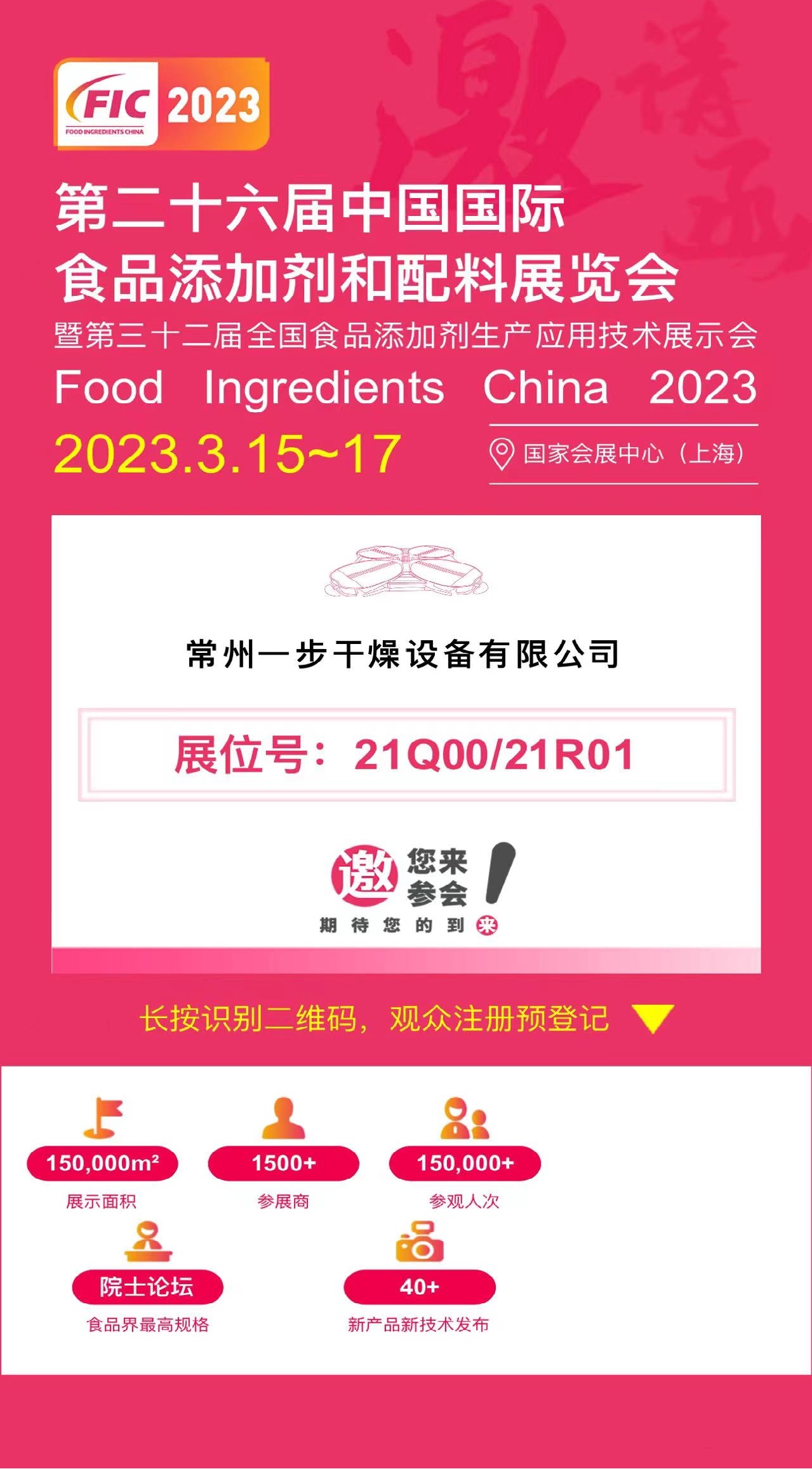 常州一步干燥设备有限公司应邀参加本次盛会,一步干燥展位位于2.1号馆,展位号: 21Q00/21R01,诚邀新老客户朋友莅临,共商合作事宜。