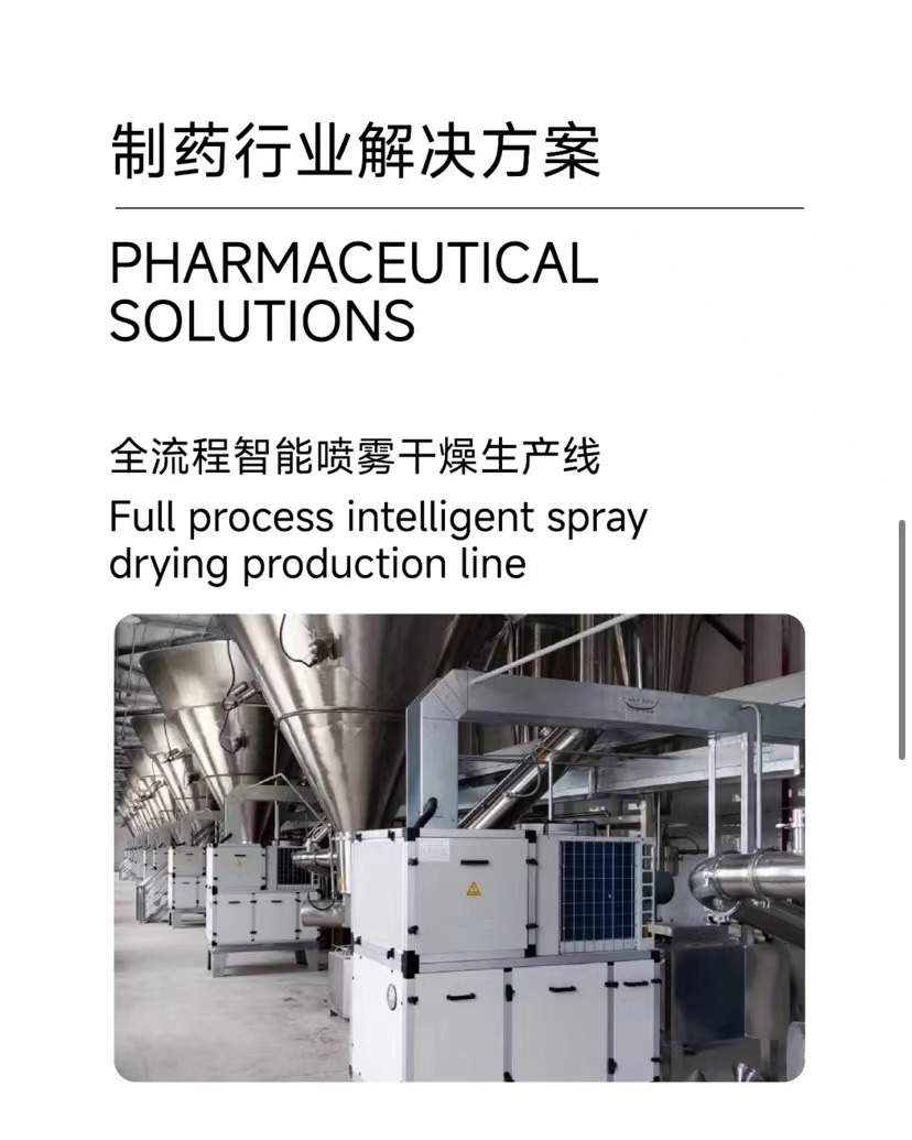Such as solutions for the pharmaceutical industry: full process intelligentspray drying production line and solidpreparation production line; Solutionsfor the chemical & new materialindustry: Flash dryer + Rotarycalcination kiln line unit, spray dryer(air top inlet and top outlet design),cone spiral vacuum dryer andhigh temperature belt dryer.