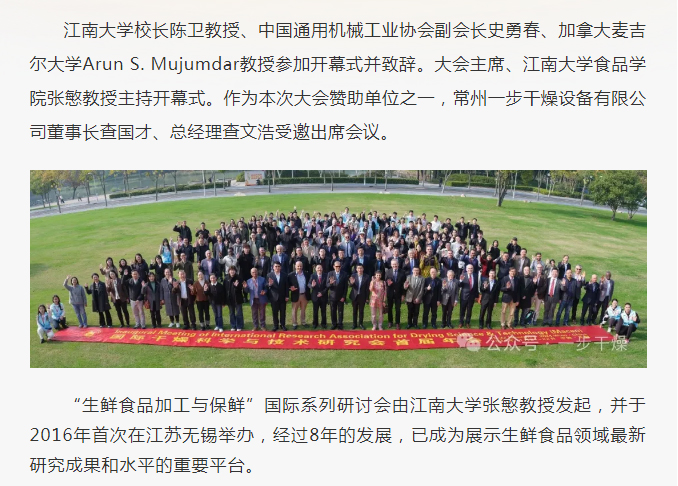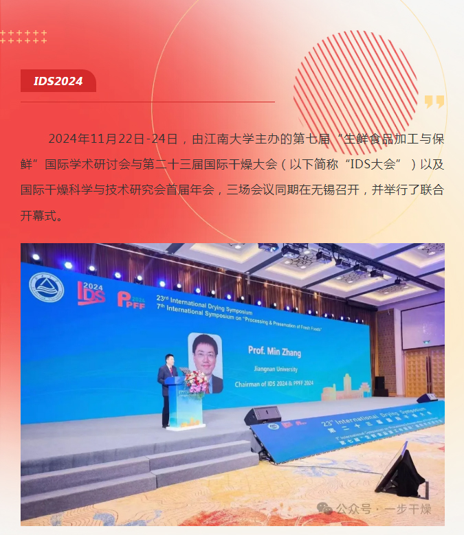 2024年11月22日-24日,由江南大学主办的第七届“生鲜食品加工与保鲜”国际学术研讨会与第二十三届国际干燥大会(以下简称“IDS大会”)以及国际干燥科学与技术研究会首届年会,三场会议同期在无锡召开,并举行了联合开幕式。
