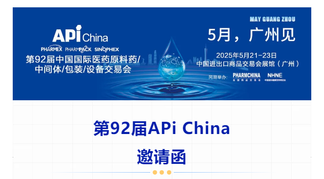 2025 年 5 月 21-23 日,第 92 届中国国际医药原料药 / 中间体 / 包装 / 设备交易会(API China)将在广州・中国进出口商品交易会展馆盛大举办。届时,常州一步干燥设备有限公司将携原料药干燥装备、固体制剂制粒干燥联线、中药配方颗粒智能化生产线等整体解决方案亮相本届展会。常州一步干燥设备有限公司诚邀您莅临 11.3 馆 11.3C01 展位,共探医药干燥领域新机遇!