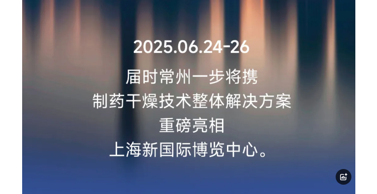 常州一步干燥设备有限公司邀您参观:第二十三届世界制药原料中国展,第十八届世界制药机械、包装设备与材料中国展,日期:2025.6.24-26,地址:上海新国际博览中心,期待您的光临!