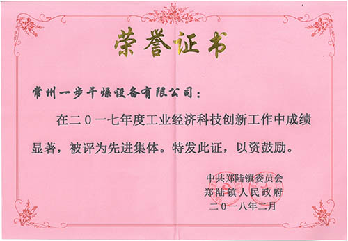 2018年3月6日,郑陆镇召开“重大项目增效年暨企业上云上市推进会”。常州一步荣获“国家标准制订单位”及“首超1亿元纳税销售企业”两项区级荣誉,并获得了“工业经济科技创新奖”。