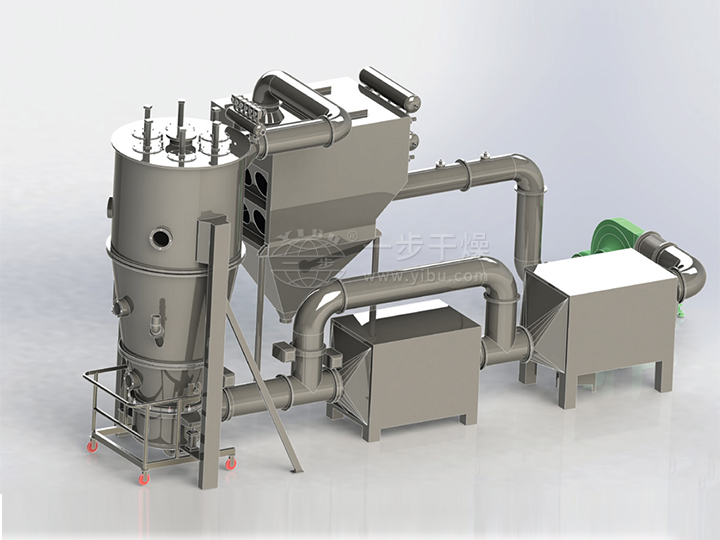 3、在闭路循环沸腾干燥机的过程中,含有溶媒的热湿气进入到冷凝器,将气体的溶媒冷凝成液体状态,这样既可以回收溶媒、又可以冷凝除湿干燥气体。回收的溶媒可以再次循环利用,节约成本,同时不会造成尾气排放对环境的污染,热湿气体经过冷凝除湿,气体内的绝对湿度低,干燥能力变强,更适应对吸潮物料的干燥。