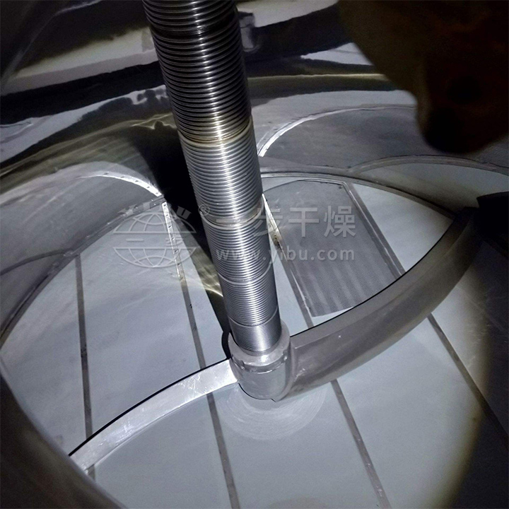 过滤工艺完成后,需要进行下一步工艺操作,即洗涤。三合一设备罐内装有特制的喷淋装置,可使清洗(洗涤)液均匀分布于罐内,通过开启搅拌系统、搅拌升降机构、传动机构,可使桨叶进行旋转运动和上下轴向运动,使物料得到充分的洗涤,将晶粒表面粘附的杂质洗涤干净。洗涤所用的洗涤液和洗涤次数需按物料、生产工艺特点而确定。