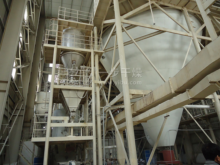 干燥用空气经初效、中效过滤器,高效过滤器过滤后得净化空气,再经过加热器升温去喷雾干燥器。干燥后的成品和空气去旋风分离器分离。成品在无菌室净化工作台收集包装。尾气经袋滤器净制后排空。
