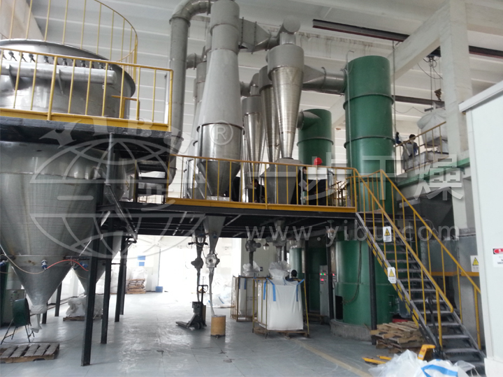 ⑥设备结构紧凑,占地面积小,集干燥、粉碎、分级为一体,是旋流技术、流化技术、喷动技术及对流技术的有机结合,干燥后不需要再粉碎、筛分,简化了生产工艺,节省了动力和设备费用。